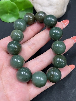 H05108696 Hetian Jade Bead Necklace, Size 15.7mm, Total Weight 80.5g