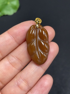 H36259340 Hetian Jade Pendant Leaf with 18k Gold Clasp Total Weight Approx. 4.3g
