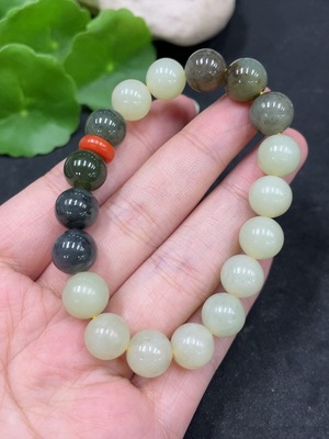 H34051933 Hetian Jade Bracelet, approx. 10mm, total weight approx. 21.3g, with non-Hetian Jade beads