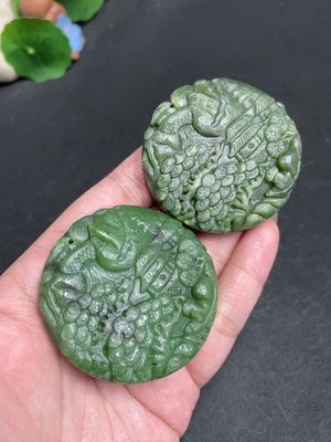 H30503383 Hetian Jade Pendant Prosperity in Full Bloom