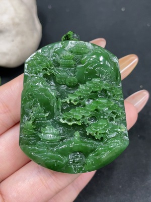 H32706497 Hetian Jade Pendant Landscape Plaque