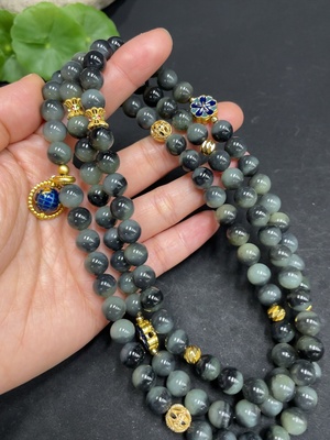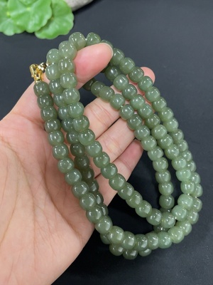 H36310374 Hetian Jade Bead Necklace Approx. 7.8mm Non-Gold-Inlaid Total Weight Approx. 100.3g