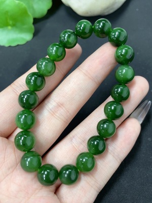 H39674365 Hetian Jade Jasper Bracelet, approx. 9.3mm beads, total weight about 26.6g