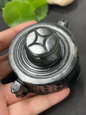 H37461745 Hetian Jade Ornament Teapot Containing Other Mineral Components Total Weight Approx. 221.5g