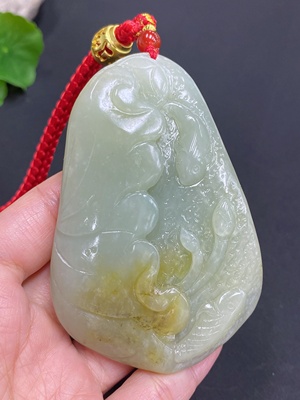 H21413728 Hetian Jade Seed Material Handheld Piece 'Abundance Every Year' Undetermined Skin Color Cause Total Weight Approximately (Including Rope) 148.5g