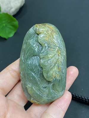 H22437792 Hetian Jade Handheld Piece Lotus Leaf Fish