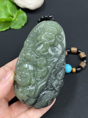 H24829248 Hetian Jade Handheld Ornament - Wealth (chain not Hetian Jade) Total Weight Approx. 240g (including chain)