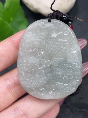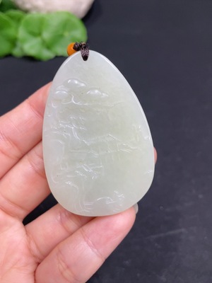 H36258214 Hetian Jade Pendant Landscape Plaque with Non-Hetian Jade Chain