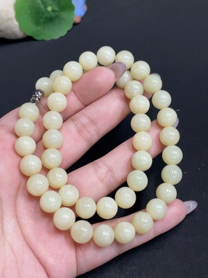 H33931289 Hetian Jade Bead Necklace, Approx. 9.3mm, Total Weight Approx. 63.4g