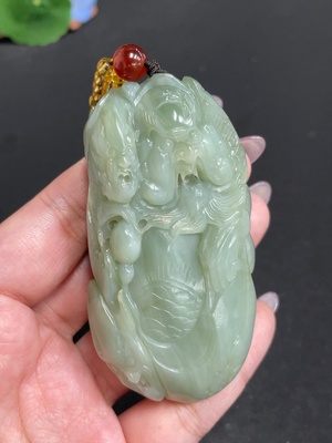 H25866989 Hetian Jade Handheld Carving Antique Style Undetermined Skin Color Origin Total Weight Approx. [Including Cord] 78.4g