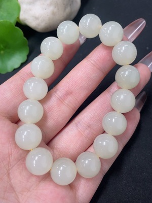 H39628585 Hetian Jade Bracelet, approx. 11.7mm beads, total weight approx. 48.6g