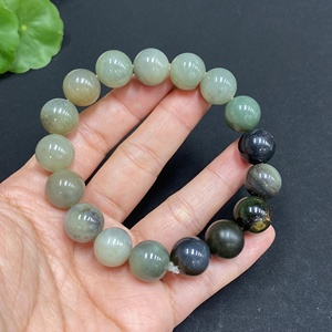 H33903802 Hetian Jade Bracelet with Other Mineral Components, Maximum Bead Size Approximately 11.7mm, Total Weight Approximately 83.3g