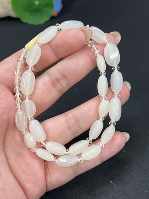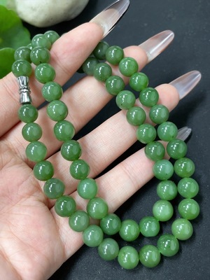 H39619976 Hetian Jade Bead Necklace, Approx. 5.4mm, Total Weight Approx. 34.5g