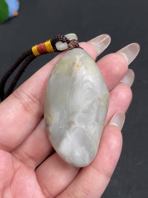 H29359526 Hetian Jade Handheld Ornament, Undetermined Skin Color Origin, Contains Other Mineral Components, Total Weight Approximately 52.8g [Including Rope]