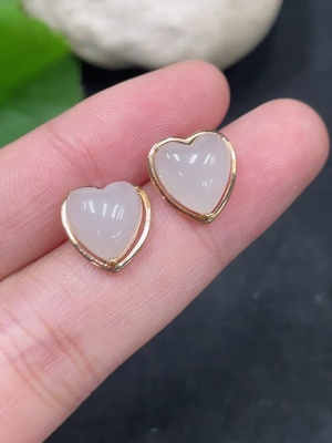H36280166 Hetian Jade Heart Inlaid Earrings, 18k Gold, Total Weight Approx. 1.9g