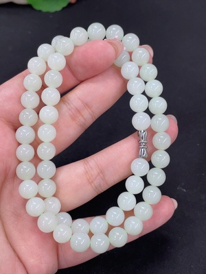 H05316277 Hetian Jade Bead Necklace, Size 13.7, Total Weight 63g