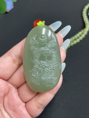 H31634384 Hetian Jade Pendant Dragon Plaque