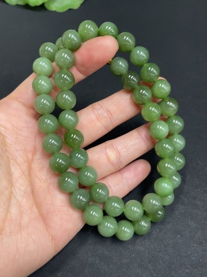 H39628006 Hetian Jade Bead Necklace, approx. 8.1mm, total weight approx. 46.1g