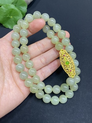 H16784467 Hetian Jade Bead Necklace, approx. 7.5mm, total weight approx. 42.9g