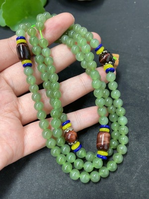 H40750604 Hetian Jade Bead Necklace, Approx. 5.8mm, Non-Hetian Jade Matching Beads, Total Weight Approx. 44.2g