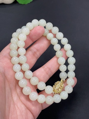 H39674808 Hetian Jade Bead Necklace, approx. 8.5mm, total weight approx. 136.6g, non-Hetian Jade accessory beads