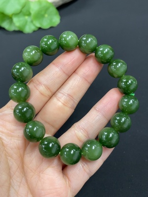 H39604553 Hetian Jade Jasper Bracelet, approx. 11.8mm beads, total weight approx. 46.7g