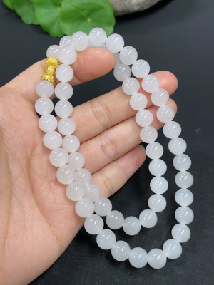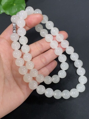 H39546735 Hetian Jade Bead Necklace, approx. 7.8mm, non-gold inlaid, total weight approx. 44.6g
