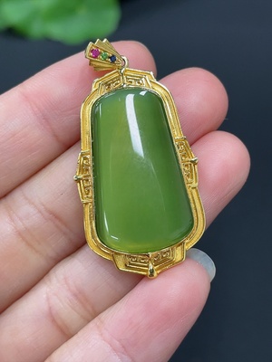 H39566059 Hetian Jade Jasper Inlaid Plain Pendant 18k Gold Total Weight Approx.7g Precious Metal Affects Color