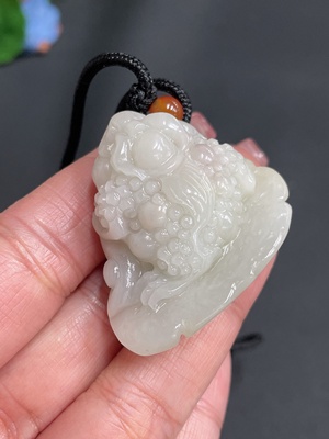 H23621127 Hetian Jade Pendant "Fortune Croaking" Approx. 32.5g Undetermined Skin Color Origin