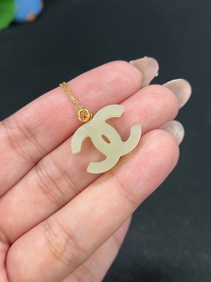 H40704780 Hetian Jade Inlaid Pendant with 18k Clasp, Non-Gold Chain, Total Weight Approx. 2.8g