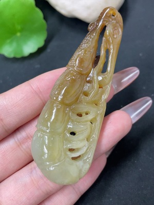 H39634304 Hetian Jade Pendant Shrimp Total Weight About 27.2g