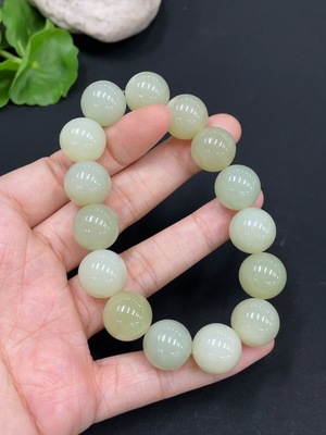 H29324570 Hetian Jade Bracelet, Approx. 13.6mm Beads, Total Weight Approx. 59.8g