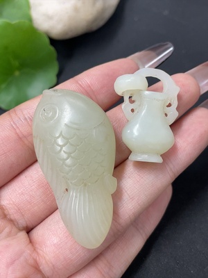 H39634746 Hetian Jade Pendant Aquarius Fish Total Weight Approx. 21.9g