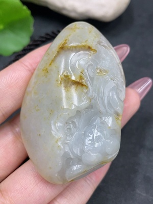 H30550494 Hetian Jade Handheld Carving Antique-style Piece with Other Mineral Components Undetermined Skin Color Origin Total Weight Approx. [Including String] 50.9g