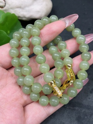 H33926108 Hetian Jade Bead Necklace Non-Gold About 8mm Total Weight Approx. 47.8g