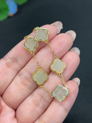 H40704471 Hetian Jade Inlaid Bracelet Total Weight About 5.2g Non-Gold
