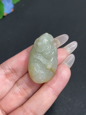 H17914088 Hetian Jade Handheld Carving - Heroic and Divine, Total Weight Approx. 102.76g, Undetermined Skin Color Origin