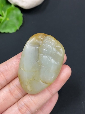 H30524578 Hetian Jade Pendant - Joy on the Brows, Containing Other Mineral Components, Undetermined Skin Color Origin, Total Weight Approx. 31.4g