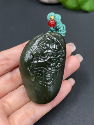 H17979682 Hetian Jade Pendant "Dragon Roaming the World" with Cord, Total Weight 81.13g