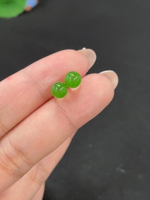 H39627652 Hetian Jade Inlaid Earrings, Approximately 6mm, Total Weight About 1g, 18k