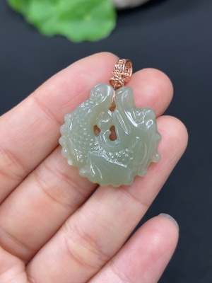 H39619518 Hetian Jade Pendant Dragon Fish Non-Gold Inlaid Total Weight Approx.5g