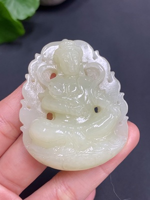 H33924353 Hetian Jade Handheld Piece - Buddha Statue, Undetermined Skin Tone Cause, Total Weight (Including String) Approx. 60.7g