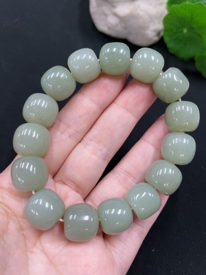 H39674613 Hetian Jade Bracelet, approx. 8mm beads, total weight approx. 20.3g