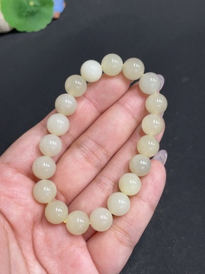 H33931443 Hetian Jade Bracelet, Approx. 9.8 mm Beads, Total Weight About 29g
