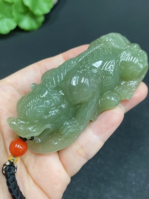 H31640707 Hetian Jade Pendant - Dragon Fish (Total Weight Including Rope: 10.8g)