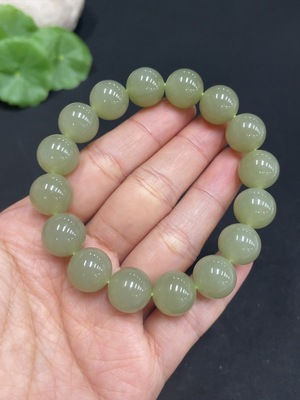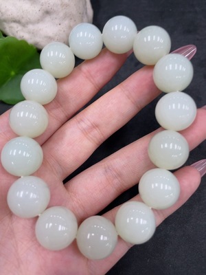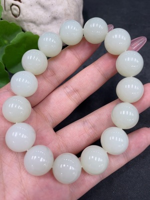 H31598095 Hetian Jade Bracelet, Approx. 12.6 mm Beads, Total Weight Approx. 60.8g