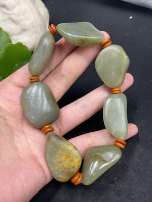 H30537619 Hetian Jade Bracelet with Non-Hetian Jade Beads, Undetermined Skin Color Origin, Total Weight Approximately 97.7g