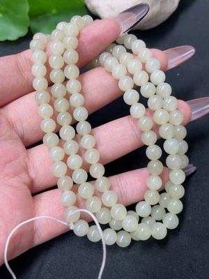 H37401651 Hetian Jade Beaded Necklace 5.8mm approx Non-gold-inlaid Total Weight: 38g