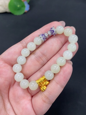 H39627059 Hetian Jade Bracelet, approx. 8.3mm, total weight approx. 19.4g, non-gold