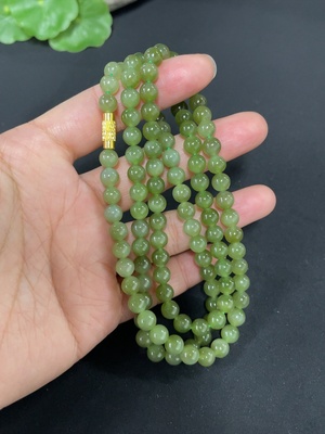 H33944784 Hetian Jade Bead Necklace Non-Gold Approx. 6mm Total Weight About 21.6g Non-Hetian Jade Matching Beads